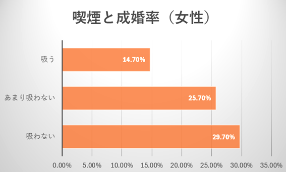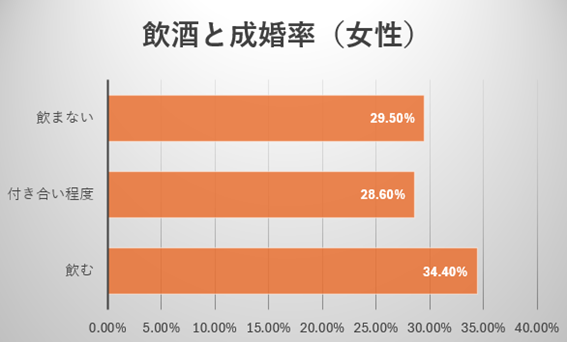 飲酒と成婚率では、日頃から飲酒習慣がある方が成婚しやすいことがわかります。